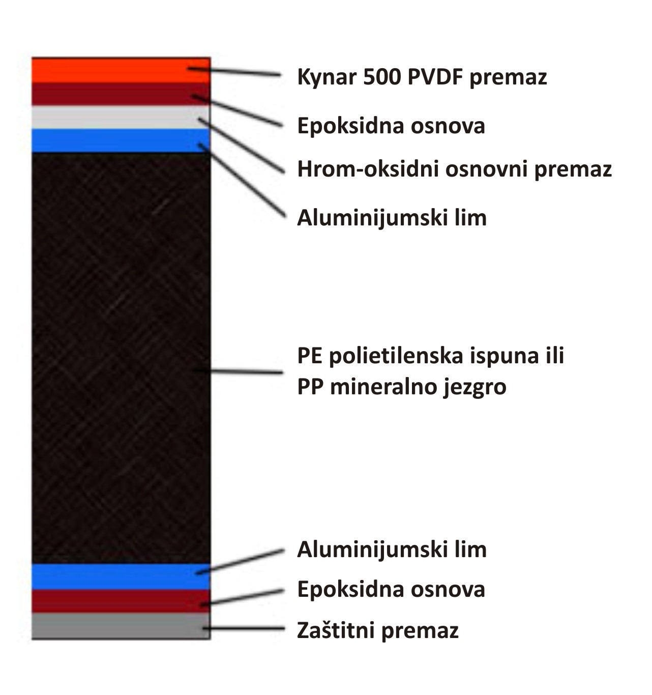 EKSALbond i I-BOND paneli se sastoje od dva aluminijumska lima ( debljina limova